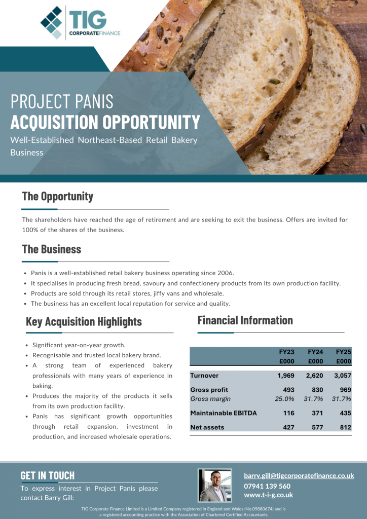 • Panis is a well-established retail bakery business operating since 2006.